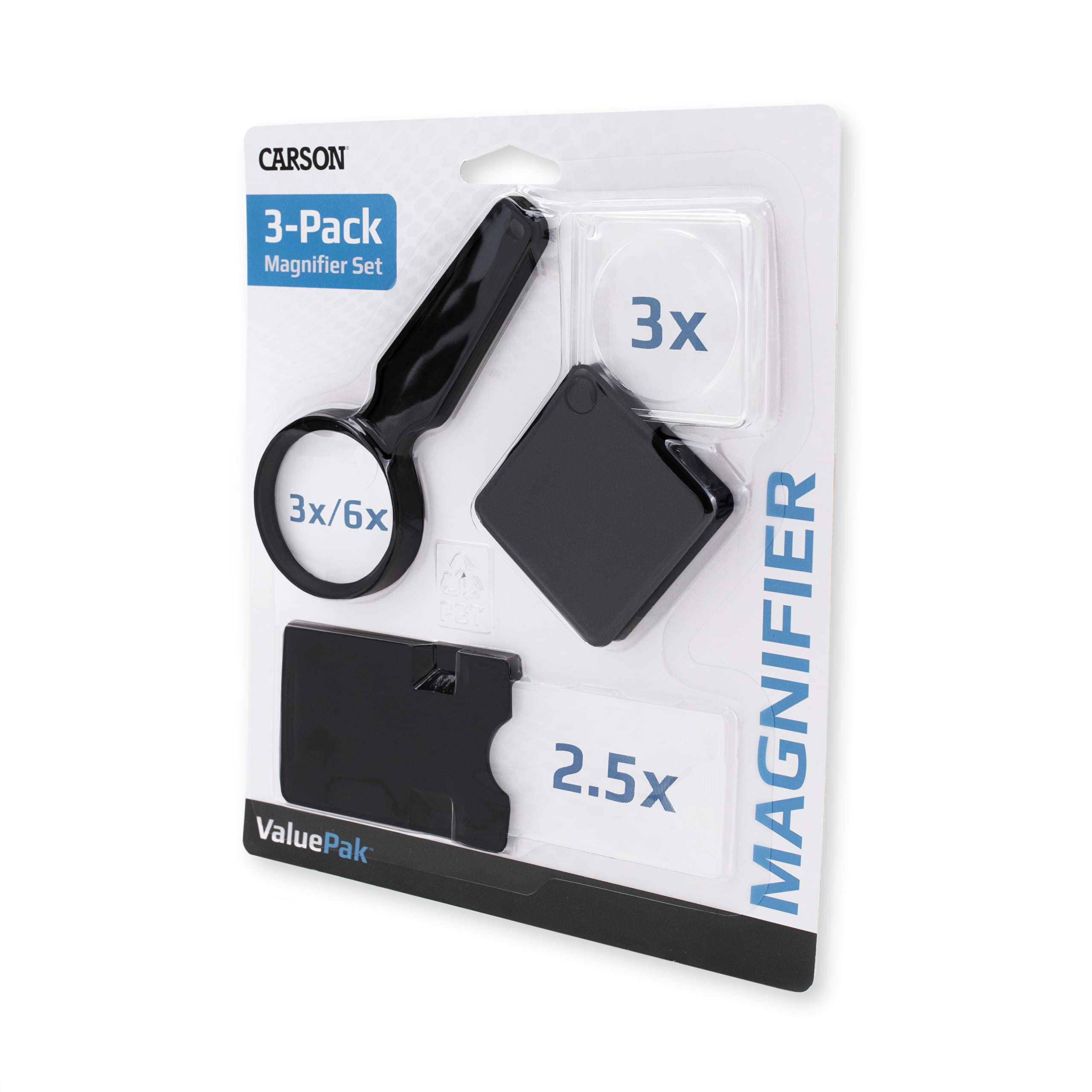 Carson ValuePak 3 Compact Assorted Magnifiers (VP-01), Black
